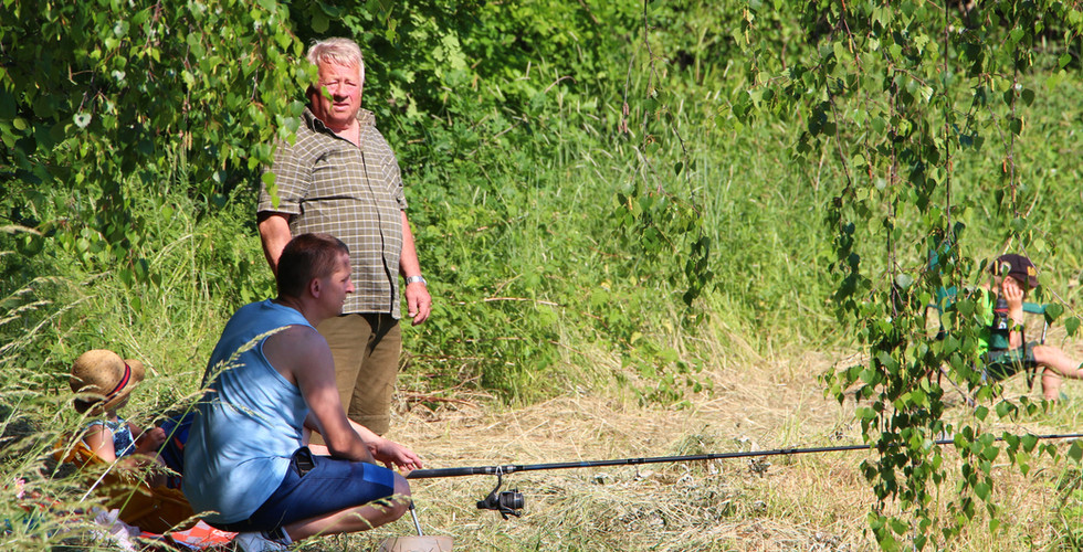 Po vyhlášení vítězů mladší kategorie byl čas občerstvit se v našem stánku. Dospělí příznivci Petrova cechu vystřídali před polednem dětské závodníky. Motivací jim byly ceny, které věnovalo Rybářství Kaplice a Myslivecké sdružení Ševětín. Několik závodníků na svůj první úlovek muselo chvíli čekat, což ale nebyl případ manželů z Jindřichova Hradce, kteří tahali doslova jednu rybu za druhou. Tito závodníci se specializovali na malé rybky za použití titěrného háčku a malého červíka jako návnady. Nakonec obsadili první dvě místa s velkým náskokem před ostatními soupeři.